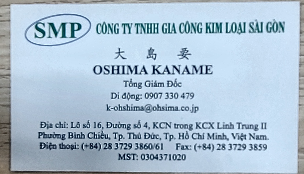 ? Địa chỉ: VIETNAM, VICAS 063-QMS TQC TQC.4810, Trưởng Phòng Kinh Doanh, MR TSUJI KAZUTAKA, +81-80-5138-3899 (Japan), Q. Bình Tân, TP.HCM, Nhà xưởng B3a&B3b, Lô K1–2–5, Đường số 2A,, KCN Lê Minh Xuân, Xã Lê Minh Xuân,, Huyện Bình Chánh, TP.HCM, Việt Nam