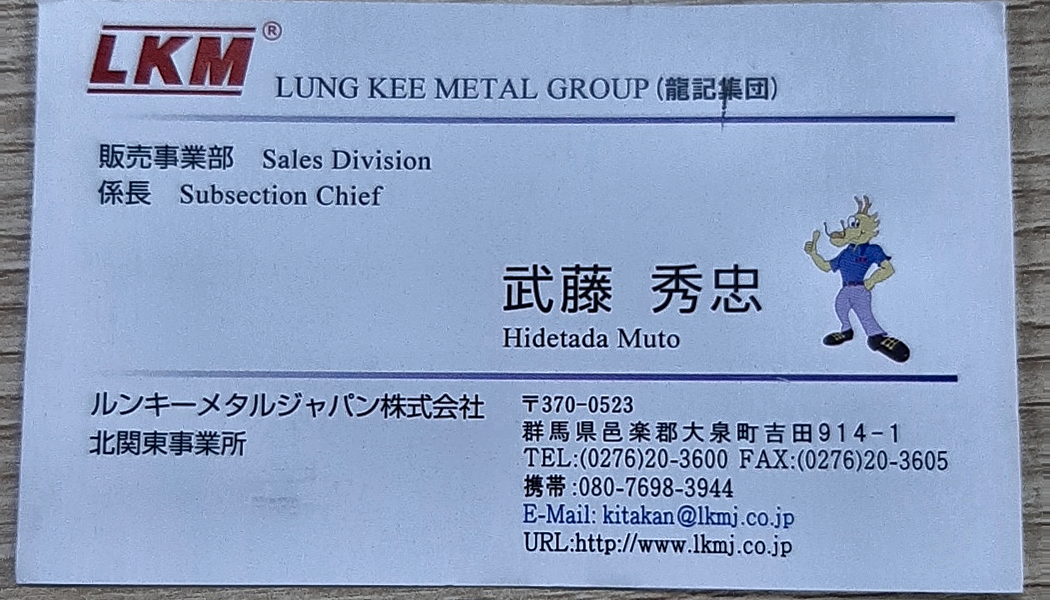 | 53 | Họ tên: 武藤 秀忠 Chức vụ: Chức vụ: 係長 Subsection Chief Công ty: LUNG KEE METAL GROUP 龍記集団 LKM Email: kitakan@lkmj.co.jp Số điện thoại: 0276203600 Website: http://www.lkmj.co.jp Mã số thuế: Địa chỉ: 群馬県邑楽郡大泉町吉田914-1 | Thailand | 2025-12-02 09:18:20 | Khách | |||