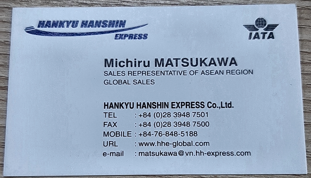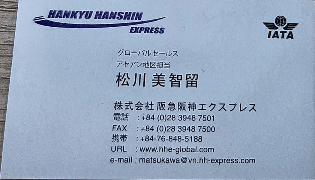 | 50 | Họ tên: : Chức vụ: Công ty: HANKYU HANSHIN EXPRESS Co.,Ltd. Email: matsukawa@vn.hh-express.com Số điện thoại: +84768485188 Website: www.hhe-global.com Mã số thuế: 2839487501 Địa chỉ: | Korea | 2025-12-02 09:33:05 | Khách | |||
