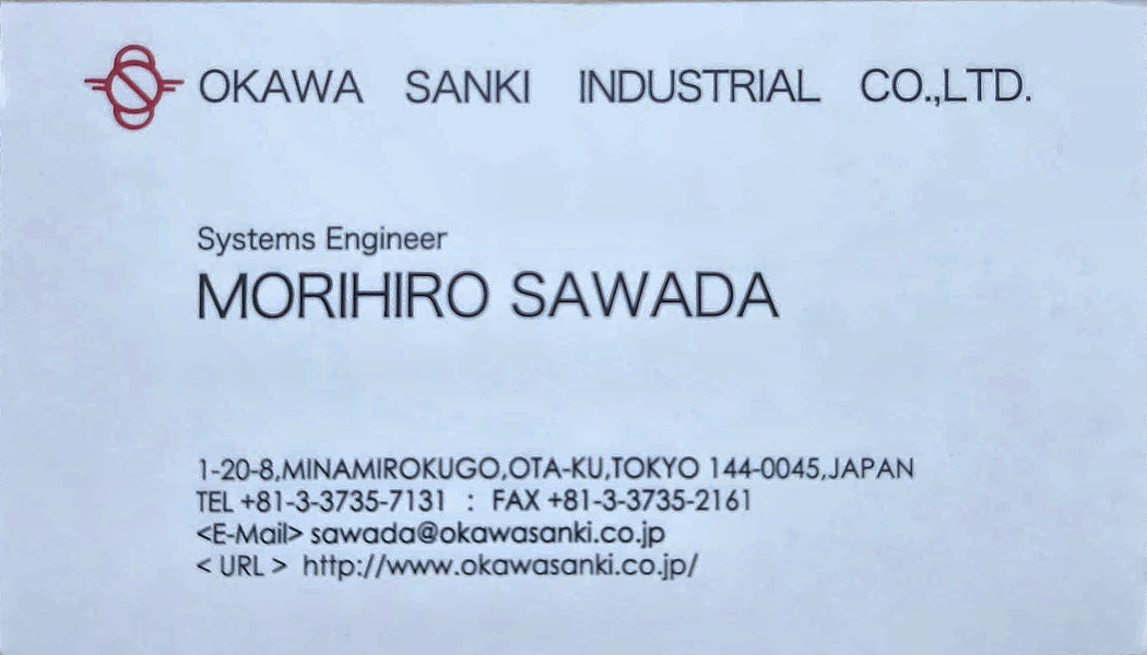 | 57 | Họ tên: : Chức vụ: Công ty: OKAWA SANKI INDUSTRIAL CO.,LTD. Email: sawada@okawasanki.co.jp Số điện thoại: Website: http://www.okawasanki.co.jp Mã số thuế: Địa chỉ: | Japan | 2025-12-02 09:05:29 | Khách | |||