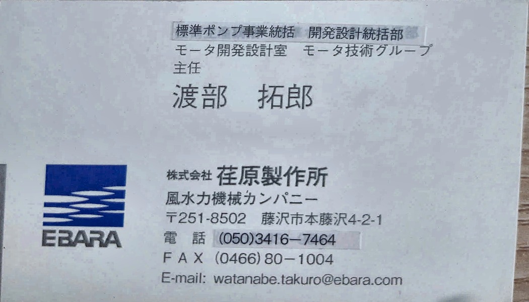 | 136 | ![]() | 👤 Họ tên: 主任 🧑💼 Chức vụ: 🏢 Công ty: 株式会社 荏原製作所 メールアドレス: watanabe.takuro@ebara.com 電話番号 0466801004 🌐 Website: 納税者番号 📍 Địa chỉ: 〒251-8502 藤沢市本藤沢4-2-1, 電話 (050)3416-7464 | India / Business / Customer / Manufacturer | 2025-10-03 16:23:29 | Khách | ||
