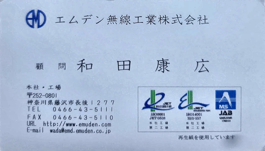 | 131 | ![]() | 👤 Họ tên: 再生紙を使用しています 🧑💼 Chức vụ: 🏢 Công ty: H エムデン無線工業株式会社 メールアドレス: wada@emd.emuden.co.jp 電話番号 0466435111 🌐 Website: http://www.emuden.com 納税者番号 📍 Địa chỉ: ・工場, |〒252-0801, 神奈川県藤沢市長後 277, TEL 0466-43-5111, 工場, 第二工場, 工場, 第二工場, MS, JAB, QMARMS, CM013, 再生紙を使用しています | Holland / Business / Customer / Manufacturer | 2025-10-05 23:25:36 | Khách | ||