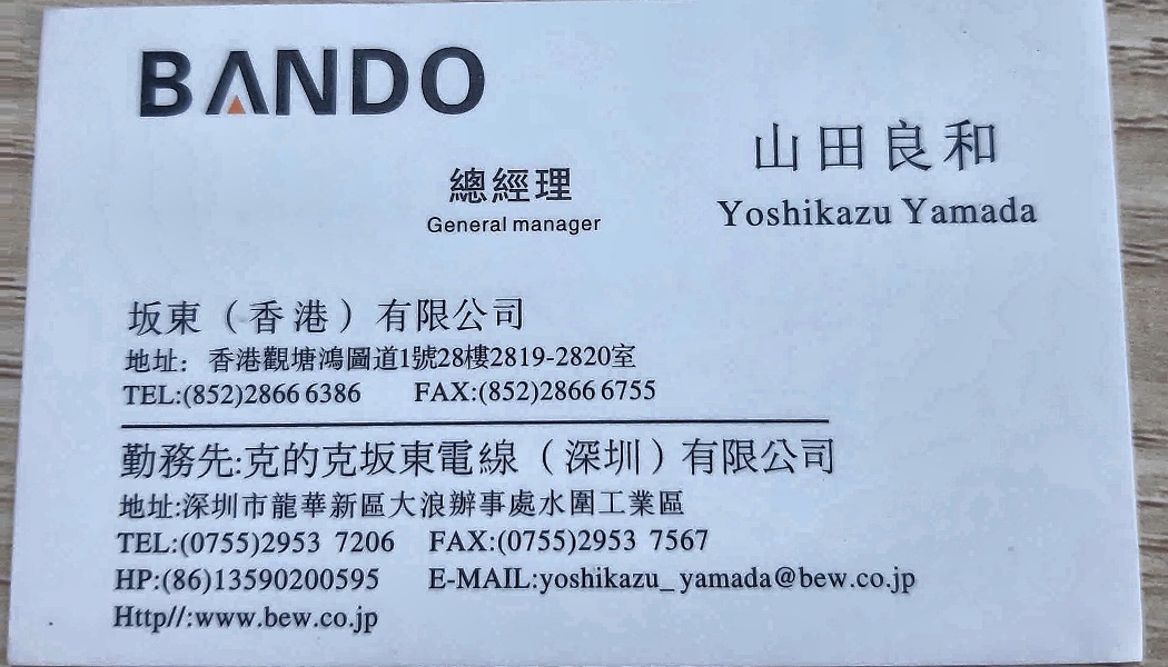 | 146 | ![]() | 👤 Họ tên: Koichi Miyasaka 🧑💼 Chức vụ: 🏢 Công ty: 坂東電線株式会社 メールアドレス: k-miyasaka@bew.co.jp 電話番号 0492806411 🌐 Website: http://www.bew.co.jp 納税者番号 📍 Địa chỉ: 埼玉県坂戸市千代田5-1-11, 〒350-0214, TEL 049-280-6411 | Hongkong / Business / Customer / Manufacturer | 2025-10-02 16:18:55 | Khách | ||