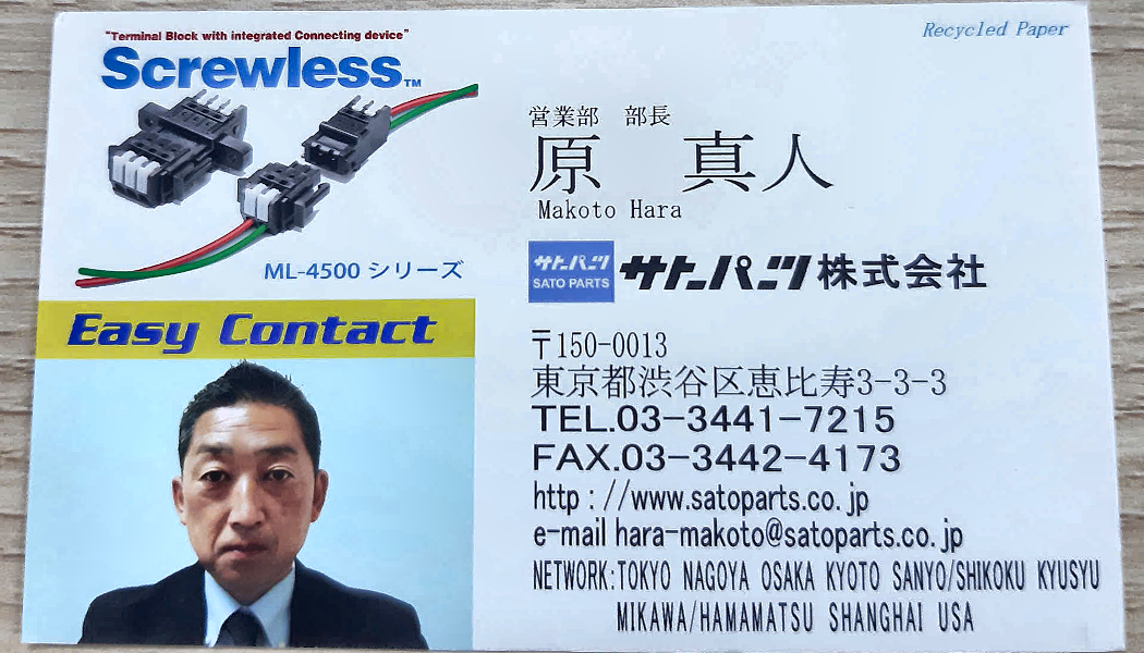 | 136 | Họ tên: 原 真人 Chức vụ: 営業部 部長 Công ty: サトーパ株式会社 Email: hara-makoto@satoparts.co.jp Số điện thoại: 0334417215 Website: Screwless.TM Mã số thuế: Địa chỉ: 東京都渋谷区恵比寿3-3-3, TEL.03-3441-7215 | Holland / Business / Automobile / Customer / Manufacturer | 2025-11-17 11:19:26 | TiênCRM CRM | |||